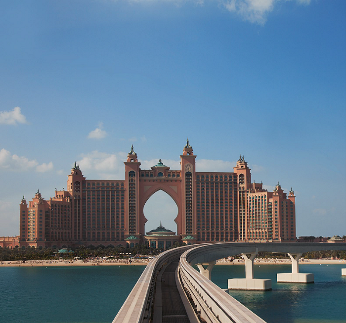 Komplex budov, který tvoří tento pětihvězdičkový hotel, dokonale ladí se svým okolím. Atlantis Hotel se skládá ze dvou věží spojených mostem. V nejvyšším bodě dosahuje budova 120 metrů. Je to i první stavba, která byla postavena na Palm Jumeirah, největším umělém ostrově na světě.